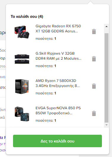 ICE-T Δημοσ. 23 Ιανουαρίου 2023 Δημοσ. 23 Ιανουαρίου 2023 2 ώρες πριν, Od1sseas είπε Γιατί να μην χωράει? 600-700€ cpu/ram/mobo + 400-500€ gpu (6700 xt/6750 xt). Πες ~1100€. Φτάνει και για κουτί/τροφοδοτικό/nvme. Αντε λίγο παραπάνω +ψήκτρα. 850W δεν είναι κάπως overkill για ένα τέτοιο setup? 6700 ΧΤ/6750 ΧΤ 230W+180W του 5800Χ3D= 410W (Ας πούμε 500 μαζί με τα άλλα). Ένα 550W τροφοδοτικό το σηκώνει άνετα. μια χαρά είναι για να είσαι και κάπως άνετος στην επόμενη αναβάθμιση, οικονομία στο τροφοδοτικό δεν κάνουμε. 1
