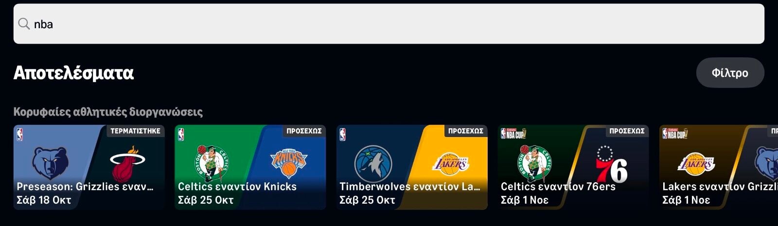 Στην αναζήτησή γράψε NBA
