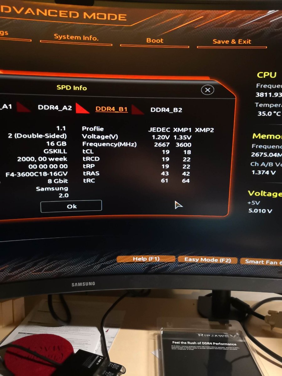 SagoniasSlutRos Δημοσ. 6 Φεβρουαρίου 2023 Δημοσ. 6 Φεβρουαρίου 2023 (επεξεργασμένο) Σε καινουριο συστημα αποτελουμενο απο: AMD 5700G Gigabyte Aorus Elite V2 G.Skill F4-3600C18D-32GVK (CL18-22-22-22-42, 1.35V) οι μνημες τρεχουν στα 2667 μονο. Εχω δοκιμασει το XMP και δεν μπουταρει το συστημα. Κανει 3 μπιμ και επανεκινηση. Στην 3η επανεκινηση μπουταρει, αλλα οι μνημες παλι 2667. Δοκιμασα να τα βαλω και χειροκινητα οπως βλεπετε στα screenshots και παλι τα ιδια. Δεν ξεκιναει το συστημα και μετα απο 3 επανεκινησεις ξεκιναει αλλα στα 2667. Για πειτε καμια ιδεα. Επεξ/σία 6 Φεβρουαρίου 2023 από SagoniasSlutRos