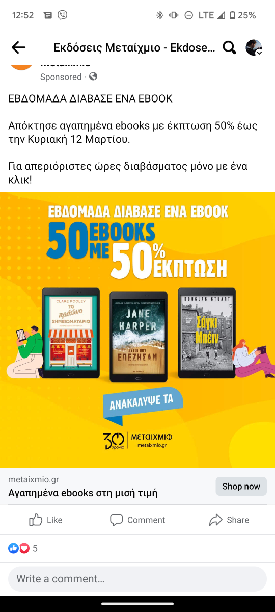 christos4 Δημοσ. 12 Μαρτίου 2023 Δημοσ. 12 Μαρτίου 2023 (επεξεργασμένο) https://www.metaixmio.gr/el/catalog/prosfores-gia-tin-evdomada-ebook-2023 Τώρα το πήρα χαμπάρι, λήγει σήμερα. 50 τίτλοι των εκδόσεων έχουν 50% έκπτωση στην ηλεκτρονική τους μορφή. Επεξ/σία 12 Μαρτίου 2023 από christos4 5 1
