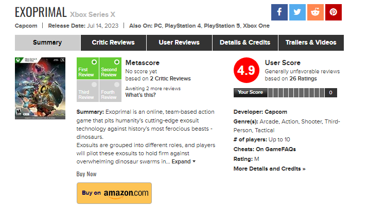 Fulgore Δημοσ. 17 Ιουλίου 2023 Δημοσ. 17 Ιουλίου 2023 (επεξεργασμένο) 2 ώρες πριν, stevenfins είπε Χωρίς σκορ από κριτικούς και με 26 μόνο user scores, δεν νομίζω πως βγαίνει πολύ ασφαλές συμπέρασμα για την ποιότητα του τίτλου. https://opencritic.com/game/15224/exoprimal https://steamdb.info/app/1286320/ https://www.twitch.tv/directory/game/Exoprimal Για full price multiplayer only multiplatform παιχνίδι, αρκετά χλιαρά πράγματα ως τώρα. Δεν ξέρω αν το έχουν παίξει άτομα από εδώ να πουν εντυπώσεις. Επεξ/σία 17 Ιουλίου 2023 από Fulgore