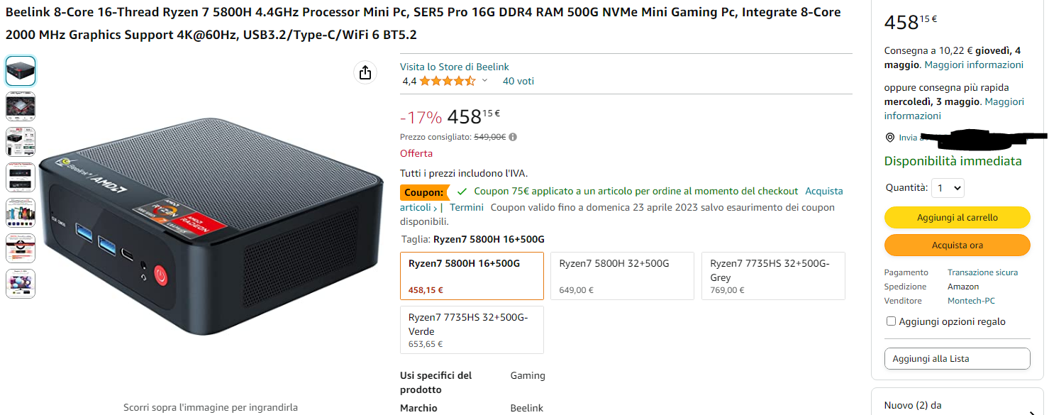 zacharis1955 Δημοσ. 20 Απριλίου 2023 Μέλος Δημοσ. 20 Απριλίου 2023 (επεξεργασμένο) https://www.amazon.it/gp/product/B0BW2HTGS 393 € τσεκάροντας το Coupon: Κουπόνι 75 €. Επεξ/σία 20 Απριλίου 2023 από zacharis1955 4