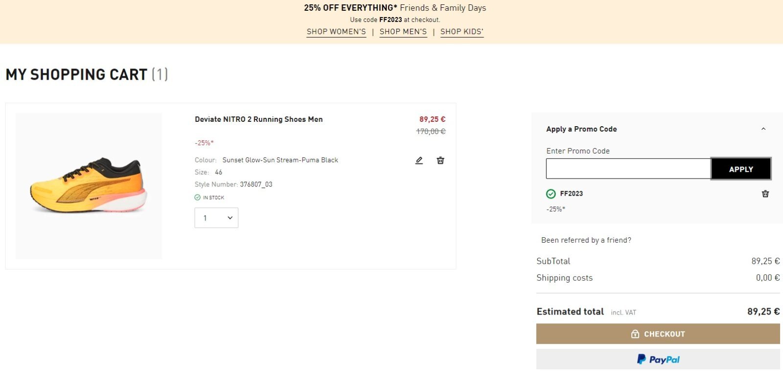 Vincanity Δημοσ. 15 Απριλίου 2023 Μέλος Δημοσ. 15 Απριλίου 2023 δεν ξερω αν πρεπει να γινει νεο τοπικ, αλλά τωρα η PUMA δινει 20% επιπλεον εκπτωση στα εκπτωτικά με κωδικό EXTRA20 και δωρεαν μεταφορικά για πανω απο 60€ παραγγελία 2