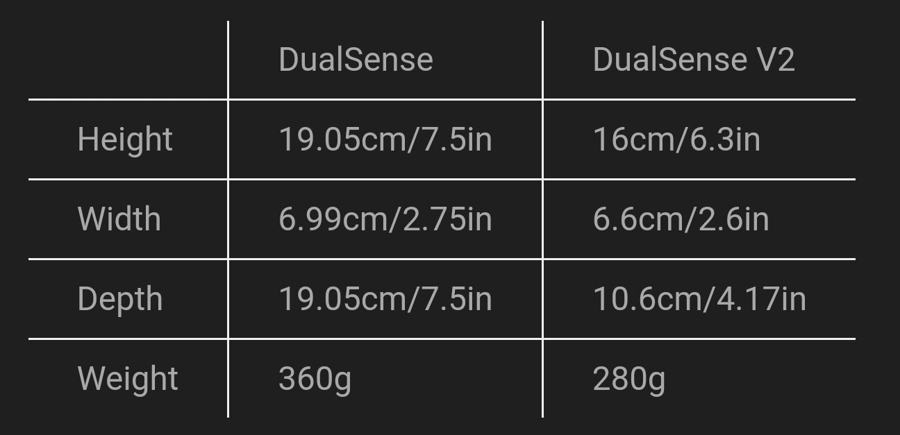Αυτο με τις διαστάσεις πραγματικά δεν ξέρω πως προέκυψε, καθώς σε όποιο site βλέπω για διαστάσεις του αρχικού Dualsense λενε τις δεξιά. Δεν έχω δει κάπου τις αριστερά, της παλιάς έκδοσης του Dualsense που έχουμε όλοι (DualShock - Wikipedia). Βλέπω κάτι λάθος;