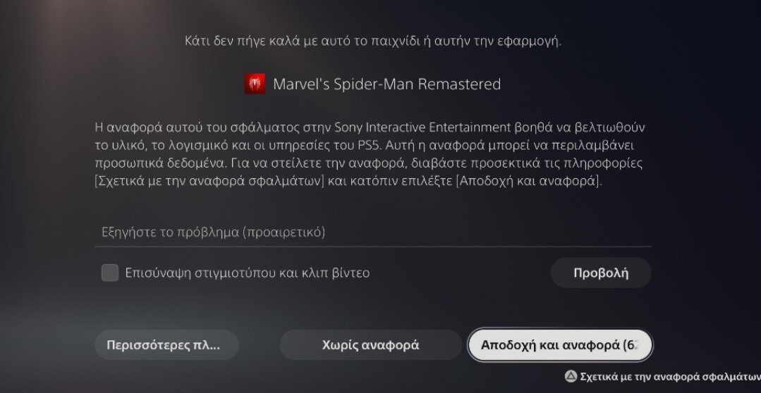 Δεύτερο crash που τρώω στο marvel spiderman remastered μετά το προτελευταίο update που διμουργησε πρόβλημα σε πολλές κονσόλες και εξακολουθεί και μετά το τελευταίο update, δε διόρθωσε τίποτα, ντροπή τους απλά..