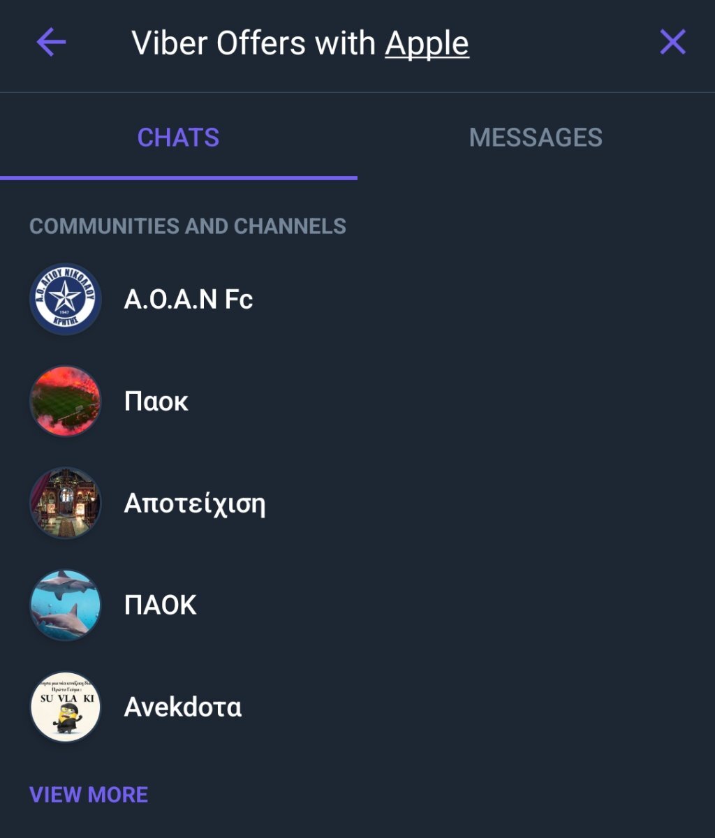 2. Γραφουμε στην αναζητηση "Viber Οffers with Αpple"