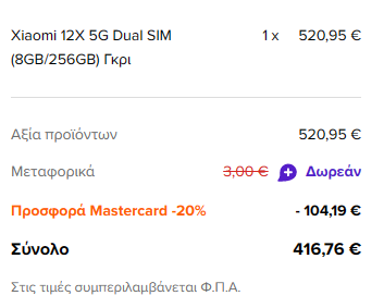 giannakp Δημοσ. 29 Μαρτίου 2023 Δημοσ. 29 Μαρτίου 2023 (επεξεργασμένο) Παρατήρησα το εξής : - Έβαλα Τρίτη πρωϊ στο καλάθι 2 προϊόντα ίδια, αξία 399€ - Έφτασα στο τελευταίο βήμα για πληρωμή μέσω Mastercard χωρίς να έχω έκπτωση. - Τα άφησα στο καλάθι χωρίς να τα σβήσω και το βράδυ όταν το άνοιξα ξανά εμφανίστηκε ως δια μαγίας το -20% με mastercard. Επεξ/σία 29 Μαρτίου 2023 από giannakp