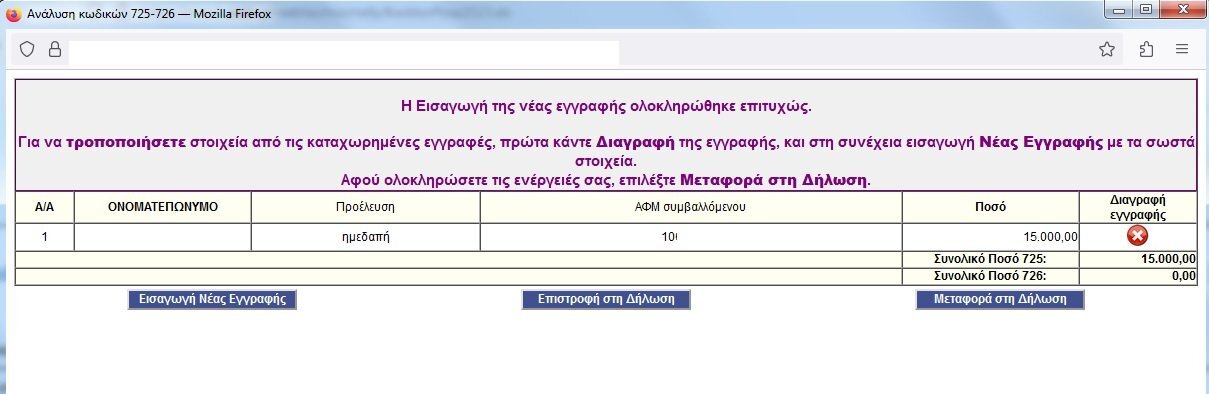 GREGORYMO Δημοσ. 19 Μαΐου 2023 Δημοσ. 19 Μαΐου 2023 4 ώρες πριν, stratos979 είπε γεια σας έκανα δωρεά στην μητέρα μου ένα ποσό 15000 ε το έβαλα στον 725 , αφμ της μητέρας και μεταφορά στην δήλωση μέχρι 800,000 δεν είναι το αφορολόγητο; στο τέλος μου βγάζει να πληρώσω φόρο 5000 + ευρώ ενώ αν σβήσω την εγγραφή της δωρεάς προς την μητέρα ο φόρος είναι μηδενικός λείπει κάτι; Έχεις κάνει την διαδικασία στο my property? 4 ώρες πριν, s93060 είπε Ο γιος μου δεν έχει εισοδήματα και δεν κάνει φορολογική δήλωση πειράζει ; Tι ηλικία έχει?