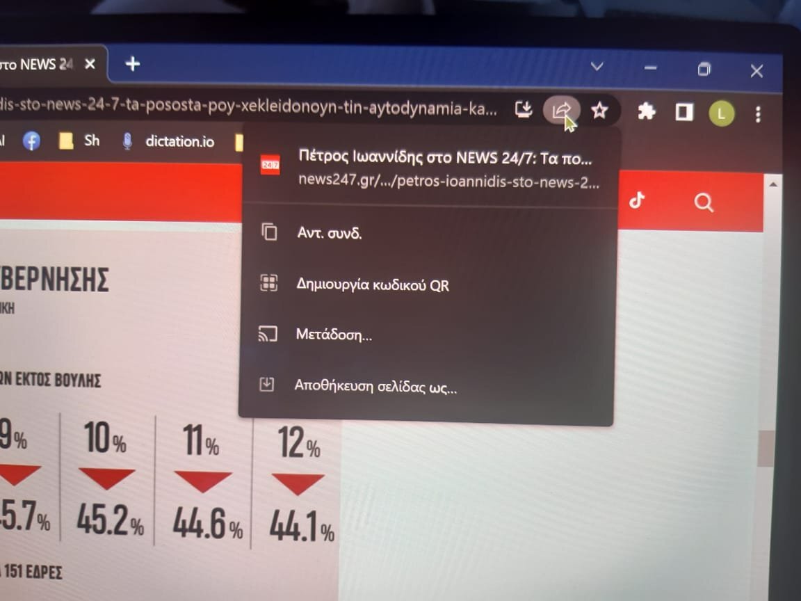 inoel Δημοσ. 22 Απριλίου 2023 Δημοσ. 22 Απριλίου 2023 (επεξεργασμένο) Καλησπέρα και Χριστός Ανέστη! Ήθελα να ρωτήσω κάτι. Στα Windows 11 υπάρχει ένα βελάκι που κάνεις κοινοποίηση στα social media ,Twitter ,Whatsapp ,Viber Τώρα ξαφνικά δεν υπαρχουν αυτές οι επιλογές και βγάζει μόνο: Αποθήκευση της σελίδας,αντιγραφή συνδέσμου ,δημιουργία κωδικού QR, μετάδοση, αποθήκευση σελίδας ως.. Ξέρει κάποιος πώς μπορούν να εμφανιστούν ξανά αυτές οι επιλογές?Ευχαριστω. Επεξ/σία 23 Απριλίου 2023 από inoel
