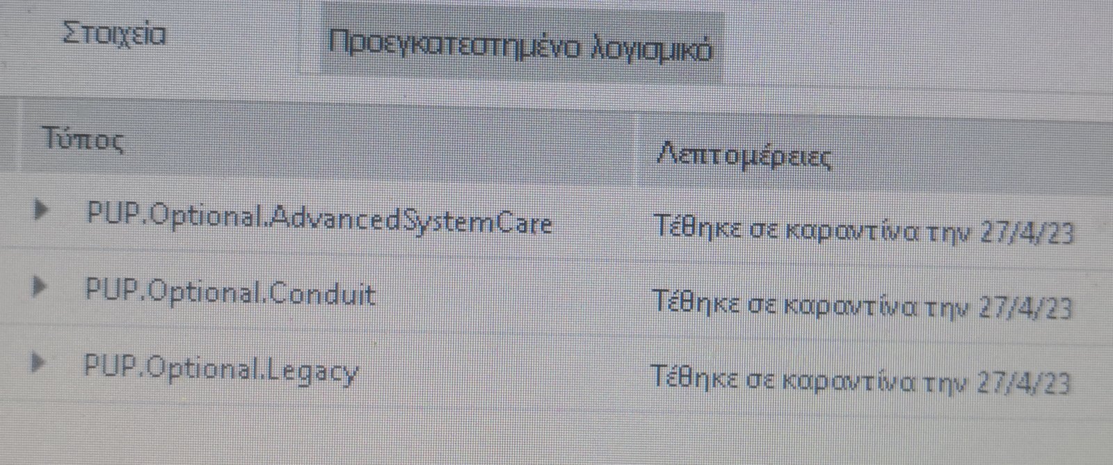 alexioannou Δημοσ. 27 Απριλίου 2023 Μέλος Δημοσ. 27 Απριλίου 2023 1 ώρα πριν, micos000 είπε Ή το ποντίκι έχει θέμα στο αριστερό πλήκτρο ή έχεις τσιμπίσει κάτι. Τι παράθυρα ανοίγουν; DOS, εφαρμογές, ισοτόπων; αν δεν ανοίξεις τον browser στο κάνει ή μόνο όταν ανοίξεις browser; αποσυνδέσεις ποντίκι να δεις αν το κάνει πάλι; έτρεξες adecleaner; Ανοίγω ας που ένα βίντεο και ανοίγει ο bsb player πολλές φορές. ,Ναι άνοιγα τον firefox και τον άνοιγε επίσης πολλές φορές Δοκίμασα άλλο ποντίκι και πληκτρολόγιο,τα ίδια. Ξεκινάω το PC χωρίς ποντίκι και πληκτρολόγιο μπαίνω bios με delete,αναβοσβηνει ένα πλαίσιο του bios και δεν μπορώ να κάνω οτιδήποτε..... Έπαιξα ένα παιχνίδι,όλα ρολόι.....🤯🤪🤯🤪🤯🤪 1 ώρα πριν, micos000 είπε Ή το ποντίκι έχει θέμα στο αριστερό πλήκτρο ή έχεις τσιμπίσει κάτι. Τι παράθυρα ανοίγουν; DOS, εφαρμογές, ισοτόπων; αν δεν ανοίξεις τον browser στο κάνει ή μόνο όταν ανοίξεις browser; αποσυνδέσεις ποντίκι να δεις αν το κάνει πάλι; έτρεξες adecleaner; "adwcleaner" Βρηκε αυτά :