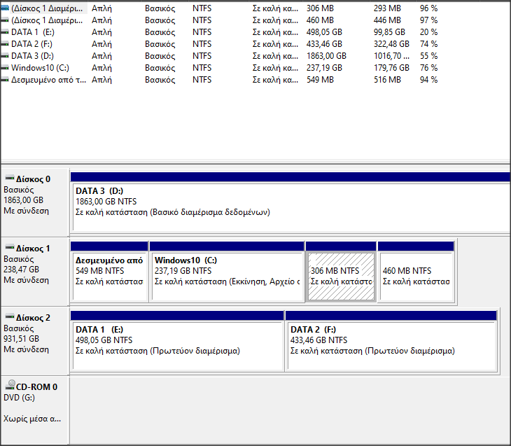 Aris_ Δημοσ. 12 Μαΐου 2023 Δημοσ. 12 Μαΐου 2023 βαλε ενα screenshot απο τον disk management "διαχειριση δισκων" εκει που εχει disk 0 disk1 ... κλπ να δουμε πως τους βλεπει