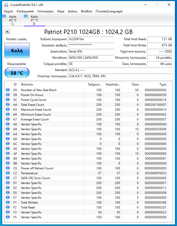 dkstopo Δημοσ. 10 Ιουνίου 2023 Δημοσ. 10 Ιουνίου 2023 (επεξεργασμένο) χαιρετώ χρησιμοποιώ 2 δισκους για να κρατώ 2 αντίγραφα από τις δουλειές μου, το κανω περίπου καθε μήνα, οι δίσκοι είναι ενας WD blue 1TB WD10EZEX του 2017 και ένας PATRIOT P210 1T δεν έχει κλείσει χρόνο το συνολο είναι περίπου 700ΜΒ αυτή την φορά είχα να πάρω περίπου 40GB νέα αρχεία (σβήνω ότι δεν θα χρειαστώ στο μέλλον) ο WD ενημερώθηκε σε λιγότερο από 15 λεπτά ο PATRIOT χρειάστηκε κατι λιγότερο από 10 ώρες για ακριβώς την ίδια δουλειά και στις 2 περιπτώσεις ο υπολογιστής δεν εκανε κατι άλλο και οι 2 συνδέθηκαν στο ίδιο καλώδιο SATA, το τσεκ των δίσκων απο win τους δείχνει ok, το πρόγραμμα που χρησιμοποιώ είναι FreeFileSync καμιά ιδέα γιατί το έκανε αυτό? Επεξ/σία 10 Ιουνίου 2023 από dkstopo