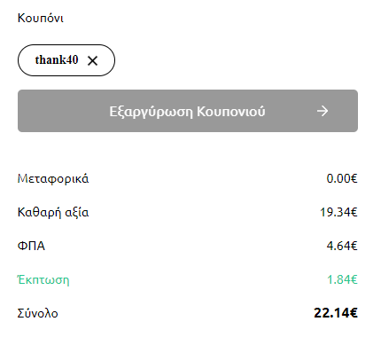 Jethro Δημοσ. 25 Ιουνίου 2023 Δημοσ. 25 Ιουνίου 2023 (επεξεργασμένο) Με τη χρήση του κουπονιου thank40 https://www.bodytalk.com/el/ Disclaimer έως 26/6 *Σε περίπτωση εφαρμογής του κουπονιού υπερισχύει απο την εμπορική πολιτική που τρέχει και εφαρμογή μια φορά ανά χρήστη & μόνο για online παραγγελίες *ισχύει η μέγιστη έκπτωση Επεξ/σία 25 Ιουνίου 2023 από Jethro 1