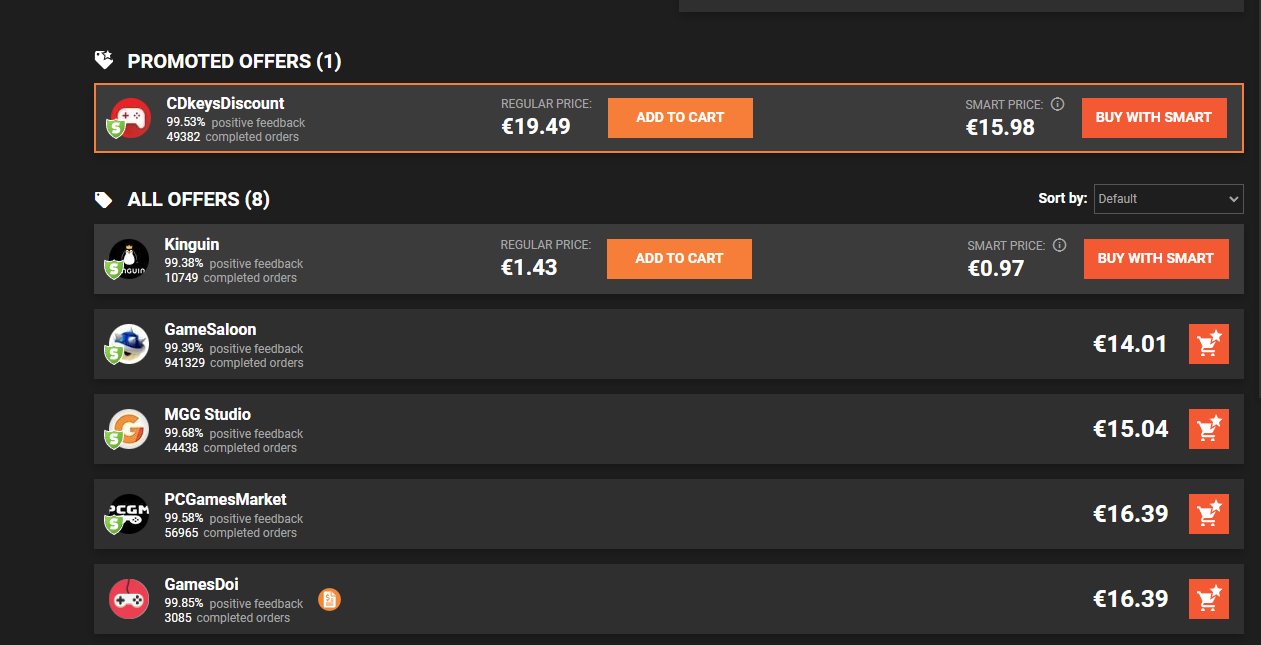 eliac7 Δημοσ. 1 Ιουλίου 2023 Δημοσ. 1 Ιουλίου 2023 Μόλις τώρα, g8777 είπε Έτσι όπως γράφτηκε στο τίτλο εύκολα το εκλαμβάνεις ως τελική τιμή, τα 2κάτι € όμως. Επέλεξες τον promoted πωλητή, αν δεις παρακάτω έχει τον Kinguin πωλητή αλλά δυστυχώς δεν έχει άλλα. 1