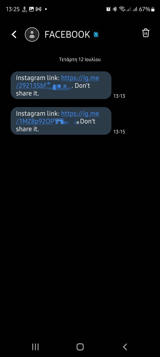 skepasti21 Δημοσ. 13 Ιουλίου 2023 Μέλος Δημοσ. 13 Ιουλίου 2023 (επεξεργασμένο) Μα προσπάθησα να κάνω και γω το ίδιο αλλά Τζιφος, αντί για λινκ , μου έρχεται κωδικός. 32 λεπτά πριν, SabotazNic είπε Εχει δικιο ο uk. Αν προσεξεις, σου ερχεται μηνυμα απο το επισημο καναλι του ινστα. Βαζει το username σου για ανακτηση (ουτε καν mail δεν θελει), και απλα στελνει το ινστα λινκ μεσω sms. Το sms ειναι μοναδικο. Οποτε, αφου τον αντεγραψε, αλλαξε ο ιδιος τον κωδικο της που ειχε "ξεχασει", και αλλαξε και ολα τα αλλα μετα. Όποιος έχει ινστα ας το δοκιμάσει, θα δει ότι δεν μπορέσει. @SabotazNic @kormos @Engimek @csontheline @Ukforthemoment @lektor Το κατάφερα αλλά δείτε τι μύνημα ήρθε..... Όεο τι γίνεται!!!!! Τι συμπέρασμα βγάζουμε? Επεξ/σία 13 Ιουλίου 2023 από skepasti21