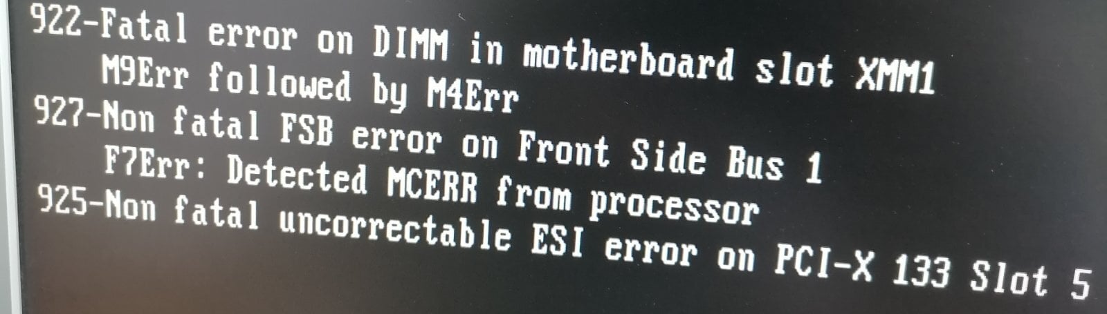 pikoriko Δημοσ. 28 Ιουλίου 2023 Δημοσ. 28 Ιουλίου 2023 (επεξεργασμένο) Ο υπολογιστης ειναι server της HP με μνημες ddr2 . Μητρικη με 2 επεξεργαστες και μνημες τοποθετημενες 4Χ2GB=8BG. Λειτουργικό linux Η μητρική εχει 8 slot μνήμης. Και ειναι τοποθετημενες 1-3-5-7 στα μαύρα slot. Τι μπορει να φταει στα εξής μυνηματα Σας ευχαριστώ. Επεξ/σία 28 Ιουλίου 2023 από pikoriko