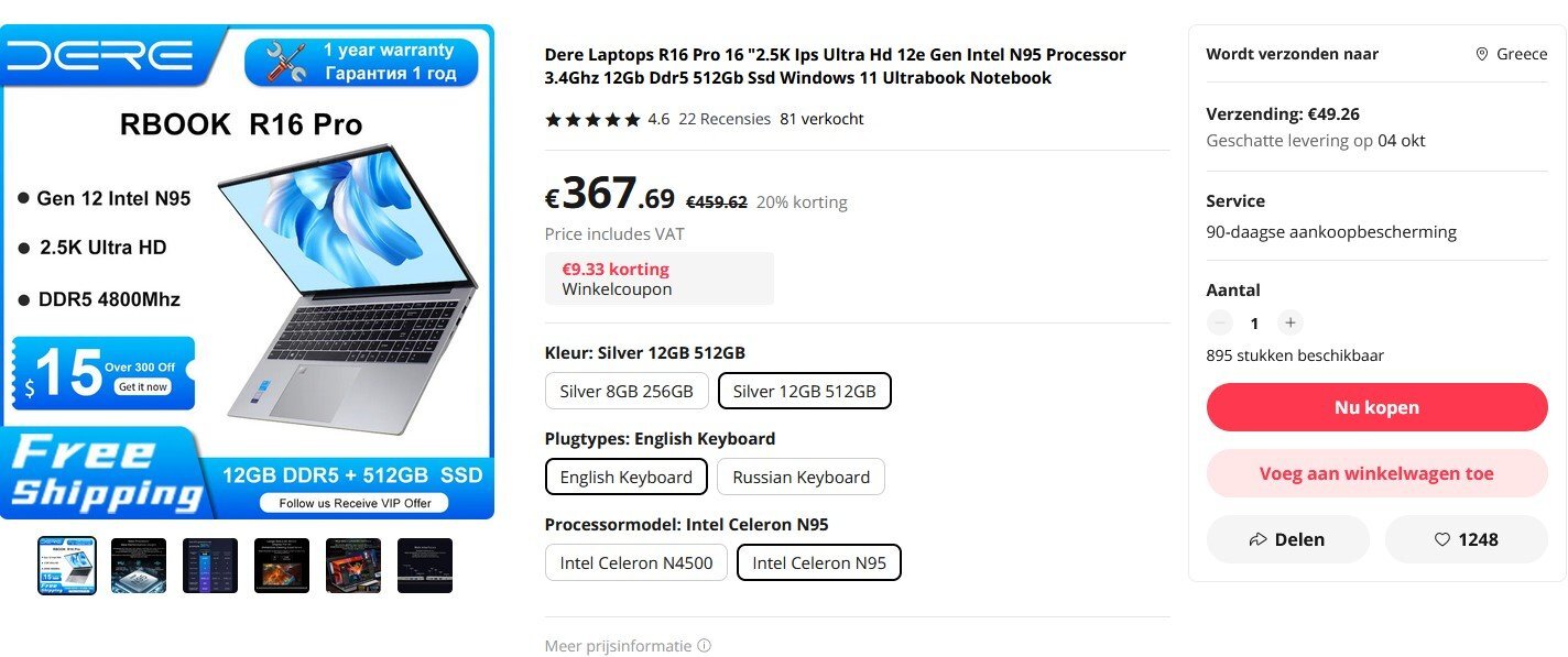 zacharis1955 Δημοσ. 10 Αυγούστου 2023 Δημοσ. 10 Αυγούστου 2023 (επεξεργασμένο) Panel 16" Ultra HD 2.5K (2560 x 1600), IPS, 400 nits, 100% sRGB CPU Intel N95 https://shorturl.at/wyEQ7 GPU Intel UHD Graphics Xe 16EUs (Tiger Lake-H) RAM 12 GB LPDDR 5-4800 in Dual Channel configuration SSD 512 GB M.2 2280 NVMe Λειτουργικό Windows 11 Body material: Aluminum https://nl.aliexpress.com/item/1005005609721546.html 329 € τσεκάροντας 12GB 512GB / English Keyboard / Intel Celeron N95, αποστολή μέσω Ευρώπης, τρόπος αποστολής AliExpress Standard Shipping. https://deremall.com/products/dere-laptop-r16-pro-16-ips-ultra-hd-2-5k-intel-celeron-n95-3-4ghz-12gb-ddr5-512gb-ssd-gaming-office-windows-11-notebooks Επεξ/σία 11 Αυγούστου 2023 από zacharis1955 1
