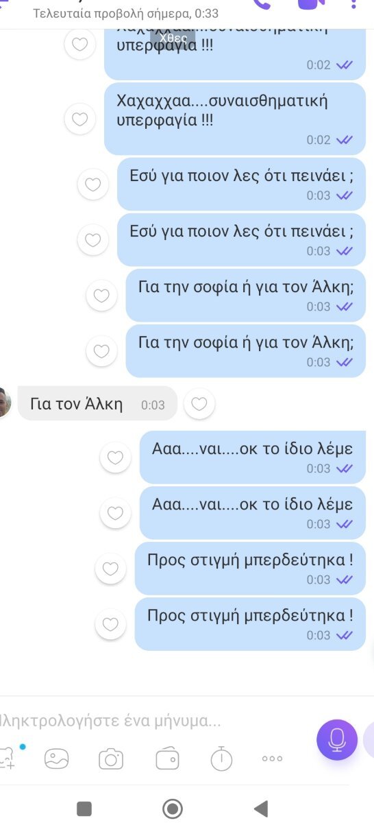 roula Δημοσ. 15 Αυγούστου 2023 Μέλος Δημοσ. 15 Αυγούστου 2023 5 ώρες πριν, Elenakyrgiou είπε Σε όλες τις επαφές ή αυτές που έχουν δύο αριθμούς; Σε όλες τις επαφές στις οποίες είχα ανταλλάξει μηνύματα και ας είναι και προ 2 ετών ας πούμε ! Ανοίγοντας δηλαδή επαφή με την οποία έχω ανταλλάξει μηνύματα , φωτογραφίες, emoji κλπ κλπ όλα από την δική μου μεριά είναι διπλά!!