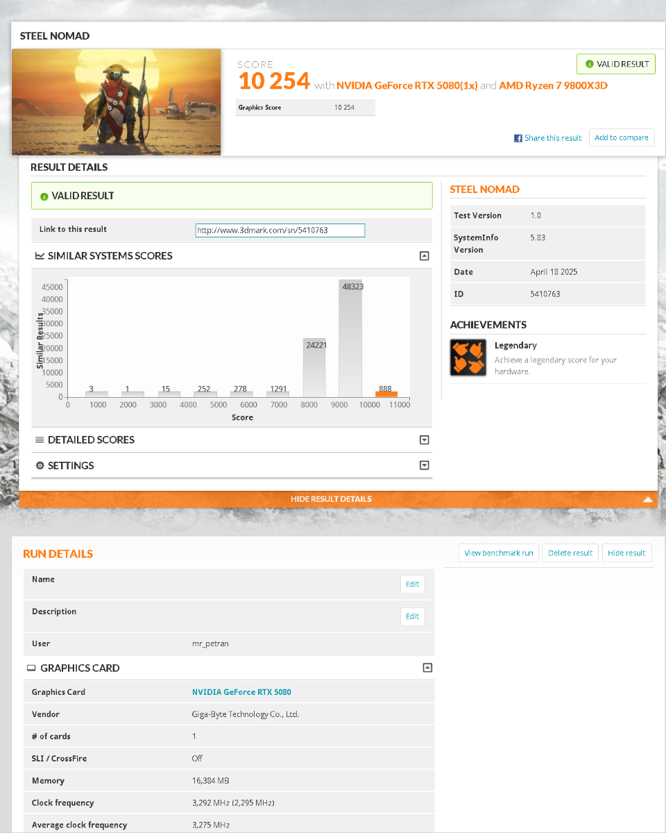 azazil1190 Δημοσ. 18 Απριλίου Δημοσ. 18 Απριλίου (επεξεργασμένο) Ετσι για τα πρακτικα με τελευταιους οδηγους ενα γρηγορο run για να δουμε διαφορα με την 5080. Παρακατω με το daily oc που εχω την καρτα για gaming k γενικα ολο το συστημα.(oxi μαξ oc.😋)Stock bios gpu . Μονο μνημες ραμ τρεχω χαμηλοτερα γιατι το καλο κιτακι ανεβαζε θερμοκρασιες και πηγε rma gskill. https://www.3dmark.com/3dm/131376145 Πλησιαζει αρκετα στο συγκεκριμενο η 5080 Επεξ/σία 18 Απριλίου από azazil1190 7