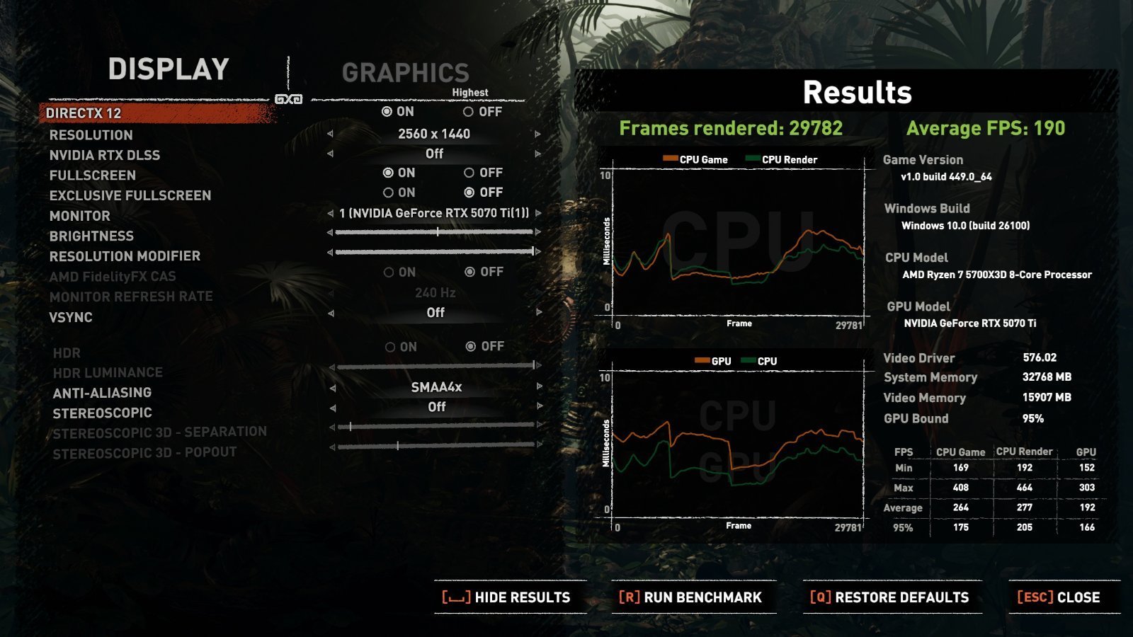 Δημοφιλής ανάρτηση malakudi Δημοσ. 19 Απριλίου Δημοφιλής ανάρτηση Δημοσ. 19 Απριλίου Το SMAA4X στο SOTTR έχει τεράστιο performance hit στην 9070XT (υποθέτω λόγω memory bandwidth), σε 1440p από 219 με TAA πέφτει στα 138 και με Highest + RT Ultra από 145 σε 102. Όλα τα run 99-100% gpu bound Ήρθε και η 5070 Ti από NBB Συγκρίσεις με την 9070XT από βδομάδα. Καλή Ανάσταση σε όλους 32