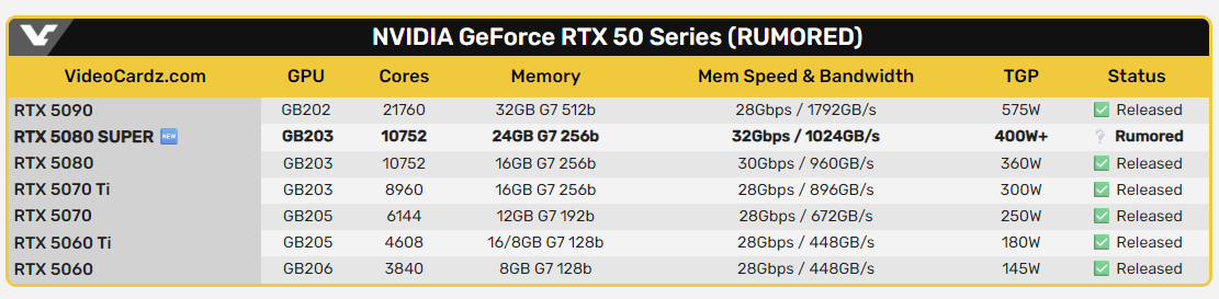 Parapas Δημοσ. 20 Μαϊου Δημοσ. 20 Μαϊου 48 minutes ago, Arkin said: Ιδια cores Το chip της 5080 ειναι το GB203-400-A1 Η vram ειναι στα 32Gbps στην 5080 ειναι στα 30 σε stock. Παει μεχρι 36Gbps σχεδον σε ολες. Ενω φαινονται ολα ιδια εκτος vram περιεργο τα 400+watt πολυ πιθανο να εχει αρκετα μεγαλυτερη συχνοτητα σε stock και εδωσαν παραπανω ρευμα για stability? Και μονο που κρατησαν παντως τα cores ιδια και το διαυλο απλα εβαλαν 3GB modules δεν ξερω ποσο παραπανω μπορει να ειναι η καρτα απο την 5080 περα απο τη συχνοτητα που ανεφερα που οκ εγω αν θελω παιζω με 350watt και 3200 σταθερα παντου αλλοι εχουν bios 400watt και πανε και 3300 ανετα. Η παραπανω vram δεν θα της δωσει boost περα απο τις ελαχιστες vram starvation καταστασεις σε 4Κ που δεν φτανει. Που δεν ειναι καθαρο starvation μιας και με τα 36Gbps παιρναει το 1.1TB ευρος η 5080. Δεν θα αργησει απο οτι φαινεται αφου εβγαλε leak ο kopite. Πιο γρήγορη μνήμη https://videocardz.com/newz/nvidia-geforce-rtx-5080-super-spec-leak-24gb-32gbps-g7-memory-and-same-core-count-as-rtx-5080