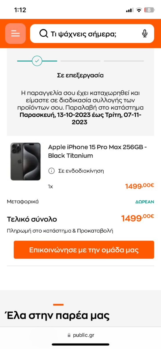 YellO_w Δημοσ. 20 Οκτωβρίου 2023 Δημοσ. 20 Οκτωβρίου 2023 (επεξεργασμένο) 1 ώρα πριν, realityyy είπε παιδιά τι σημαίνει Σε ενδοδιακίνηση Ποτέ έκανες την παραγγελία ; Γιατί το δικό μου λέει «Σε αναμονή από προμηθευτή» , ενώ χθες έλεγε «Καταχωρήθηκε» Επεξ/σία 20 Οκτωβρίου 2023 από YellO_w