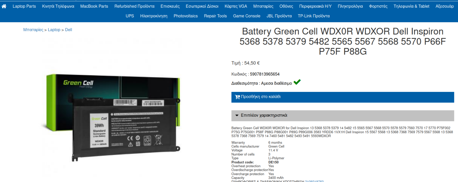 mphxths Δημοσ. 5 Οκτωβρίου 2023 Δημοσ. 5 Οκτωβρίου 2023 Δες το part number της μπαταριας με καποιον τροπο. Αν ταιριαζει με αυτης εδω , καλοριζικη. Δεν ειναι και το πιο φτηνο καταστημα , οποτε ψαξε και αλλου. Απο το συγκεκριμενο εχω παρει μπαταρια για DELL (refurbished) φορητο , που πηρα απο το ιδιο καταστημα και δεν εχω κανενα προβλημα με την λειτουργια της. Δεν ξερω αν ηταν original ή οχι , αλλα δουλευει κανονικα και ολοι ξερουμε ποσο ιδιοτροπη ειναι η DELL με μπαταριες και φορτιστες ... Αρα υποθετω οτι ειναι original ή τουλαχιστον εγκεκριμενη απο την DELL.