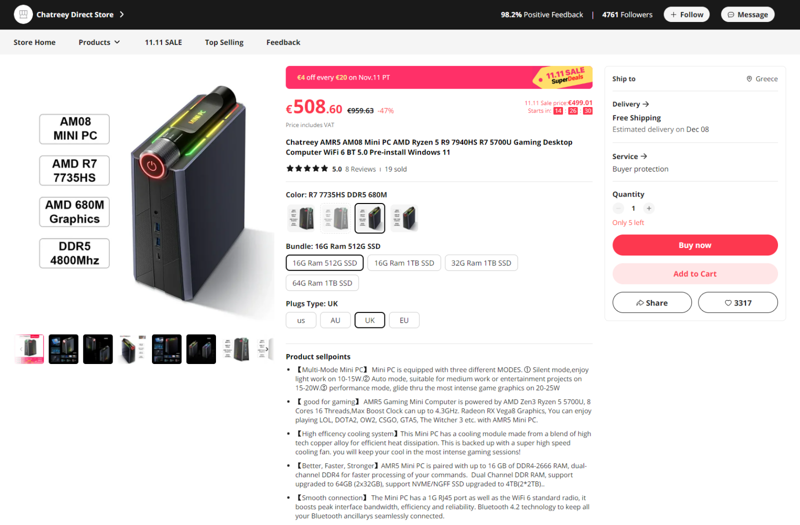 Doubt Δημοσ. 11 Νοεμβρίου 2023 Δημοσ. 11 Νοεμβρίου 2023 Αυτό σε barebone βγαίνει στα 269€ Αξίζει; τι λέτε; Μνήμη και "δίσκος" θα μπουν τα παλιά που έχω. https://store.minisforum.de/en/products/minisforum-un1245-un1265?variant=41929937846455