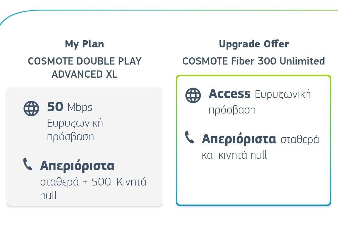 vdanasto Δημοσ. 3 Νοεμβρίου 2023 Δημοσ. 3 Νοεμβρίου 2023 Στις 1/11/2023 στις 3:32 ΜΜ, 7nisiotis είπε Εφόσον είμαι ήδη στον ΟΤΕ και η μοναδική "προσφορά" από το τρομερό τμήμα εξυπηρέτησης πελατών από μια με φωνή αλά Αλίκη Βουγιουκλάκη (κοντεψα να κοιμηθώ γιατί κυριολεκτικά ήταν σαν να μιλούσε κρυφά, ψιθυριστά) στο 13888 είναι 24αρα (μάι @ςς) στα 31.99€ ή 32.99€ δε θυμάμαι ακριβώς/μ (ενώ έχω ήδη VDSL50 από το 2018, πληρώνω πλέον γύρω στα 27/μ~€ και μου λέει "δεν βλέπω να υποστηρίζεται"), αίτηση για "πενιχρή" 100αρα με 34.99€/μ, κατόπιν πρότασης της και "θα δούμε αν υπάρχει υποστήριξη", ενώ της ανέφερα, διεύθυνση, την ύπαρξη νέας FTTH καμπίνας στα 30μ - και τον αριθμό της-, έχουν σκαφτεί καναλακια κλπ όλα αυτα απ τον Μάιο.... "το βλέπω στο πορτοκαλί". Ουσιαστικά διάβαζε ότι να ναι από την σελίδα https://my.cosmote.gr/selfcare/jsp/diathesimotita-adsl-vdsl-cosmotetv.jsp?ct=res#searchresults Η αλήθεια είναι ότι πριν τον Μάιο έδειχνε έως 50. Πλέον δε δείχνει τίποτα παρά μόνο από 24αρα έως 1000αρα "πρέπει να διερευνηθεί παραπάνω - καλέστε μας" στην εφαρμογή της Cosmote εμφανίζεται μια "προσφορά" 37.90€ για 300αρα. (με απεριόριστα προς κινητά κλπ, δε με νοιάζει τόσο αυτό,ας ήταν φθηνότερο με λιγότερα λεπτά πχ 120 μια χαρά) Να κάνω μια προσπάθεια να πάρω προσφορές από τα νούμερα παραπάνω ή άδικος κόπος μιας και συνήθως καλύπτουν μόνο μεταφορά από ανταγωνιστικούς παρόχους και επιπροσθέτως έχω καρτοκινητο (cosmote) χωρίς κανένα ενδιαφέρον να το αλλάξω σε καρτοσυμβολαιο ή σκέτο συμβόλαιο; Ή να κάνω επίτηδες κίνηση ενδιαφέροντος από Nova και να περιμένω αντιπροσφορα του Οτε; Εάν έχεις νεότερα ενημέρωσέ μας, είμαι στην ίδια φάση και δεν ξέρω πως να κινηθώ.