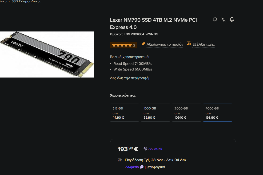 lpat2001 Δημοσ. 24 Νοεμβρίου 2023 Δημοσ. 24 Νοεμβρίου 2023 (επεξεργασμένο) Samsung SSD 870 EVO MZ-77E4T0B/EU | High speed 2.5'' internal SSD drive, 4 TB https://www.amazon.fr/gp/product/B08PC5ZC73/ref=ppx_od_dt_b_asin_title_s00?ie=UTF8&psc=1 Γαλλικο αμαζον πριν λιγο προσφορα με τελικη τιμη στην Ελλαδα 181.66 ευρω.... https://www.skroutz.gr/s/27286841/Samsung-870-Evo-SSD-4TB-2-5-SATA-III-MZ-77E4T0B-EU.html...277 ευρώ ειναι στο skroutz ή φτηνοτερη τιμη Επεξ/σία 24 Νοεμβρίου 2023 από lpat2001 6 2
