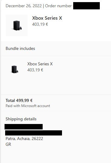 vasilis_ts Δημοσ. 28 Νοεμβρίου 2023 Μέλος Δημοσ. 28 Νοεμβρίου 2023 29 λεπτά πριν, G@rg@oun είπε Eνα HELP.. Εκανα μια αγορά τώρα από το microsoft.de Εβαλα Greece χωρα πριν το check out..την εμφανιζε κανονικά. Εβαλα διευθυνση Ελλαδας..τκ κλπ. Πληρώνω και σκάει το Invoice και γράφει ότι η πληρωμή έγινε ολα οκ<είδα και την χρέωση> και στο Shipment γράφει την διεύθυνσή μου που έβαλα και μετά από κάτω γράδει ένα "DE" Delivery 1-12-2023..πρώτον πολύ γρήγορο δεν είναι και δεύτερον δεν πιστεύω να το πάει πουθενά στην Γερμανία. Έχει τύχει σε κάποιον κάτι ανάλογο? Βάλε ένα screenshot αν μπορείς.