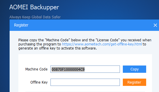 lefta_yparxoun Δημοσ. 4 Δεκεμβρίου 2023 Δημοσ. 4 Δεκεμβρίου 2023 3 λεπτά πριν, ak156 είπε δεν κατάλαβα πως ακριβώς το κάνεις...που βρίσκεις το "machine code"??....επίσης κάτι αντίστοιχο μπορεί να γίνει και για το Partition Manager? έβαλα την εικόνα, όταν πάτησα register μου έβγαλε το machine code για το partition δεν ενδιαφέρθηκα γιατί δεν το χρειάζομαι Στις 3/12/2023 στις 11:41 ΜΜ, lefta_yparxoun είπε Please copy the "Machine Code" below and the "License Code" you received when purchasing the program to https://www.aomeitech.com/get-offline-key.html to generate an offline key to activate this software. 1