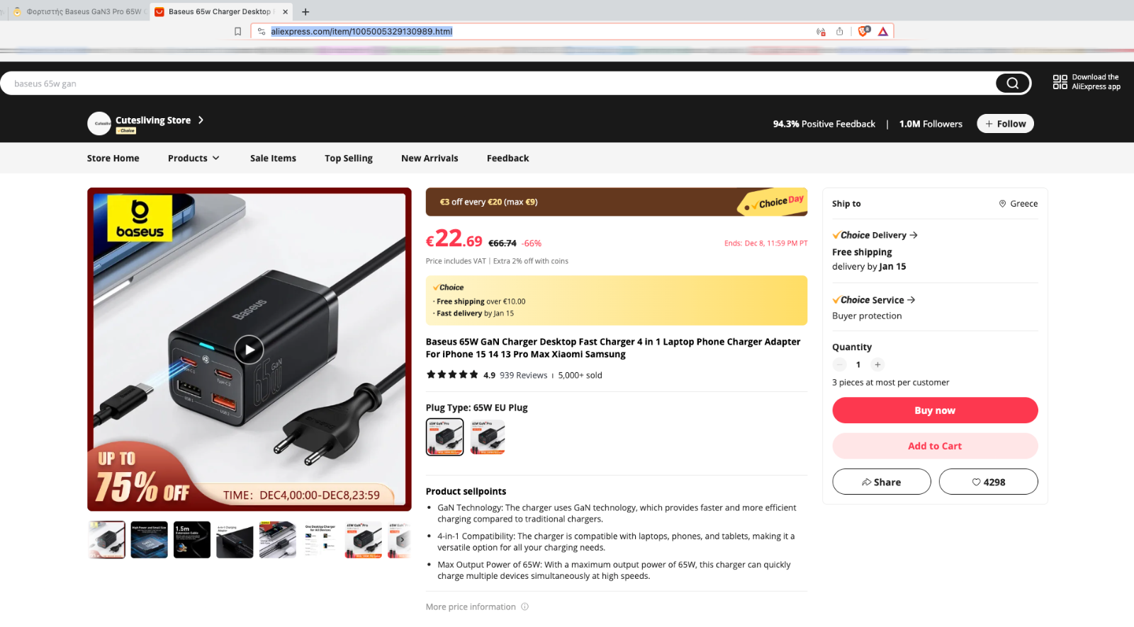 Το ερώτημα είναι αν ο Baseus της προσφοράς θα φορτίζει στα 60W το κινητό ή θα έχω μια απλή (όχι και τόσο γρήγορη) φόρτιση...;