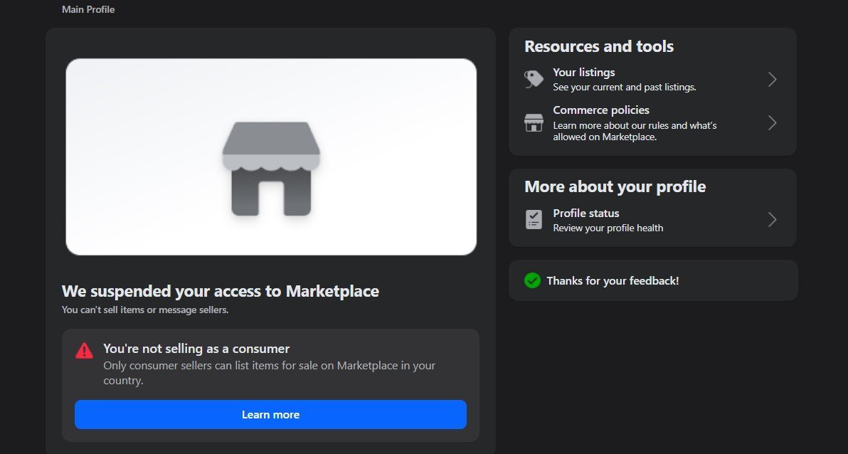 baspav Δημοσ. 29 Σεπτεμβρίου Δημοσ. 29 Σεπτεμβρίου Από τα συμφραζόμενα και το screenshot καταλαβαίνει κανείς πως ο αλγόριθμος του facebook απενεργοποίησε προσωρινά τη δυνατότητα συναλλαγής με το fb marketplace γιατί θεώρησε πως πουλάς σαν επαγγελματίας και όχι σαν καταναλωτής πράγμα που απαγορεύεται από τον κανονισμό του. Έχει το Meta Business γι' αυτό το σκοπό και σε καλεί έμμεσα να πας εκεί. Γνωρίζω και άλλους που το έκανε ενώ δεν είναι πωλητές/μεταπωλητές οπότε σίγουρα κάνει και λάθη. Πως θα το επαναφέρετε τώρα δε ξέρω. Ίσως στο "βοήθεια και υποστήριξη", "αναφορά προβλήματος"; Λέει προσωρινά απενεργοποιημένο οπότε ίσως υπάρχει κάποιος τρόπος.