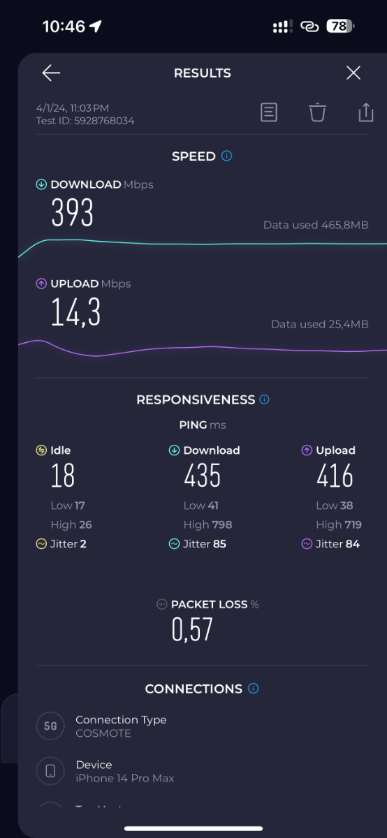 johnmambo Δημοσ. 5 Ιανουαρίου 2024 Δημοσ. 5 Ιανουαρίου 2024 (επεξεργασμένο) Καλημέρα και καλή χρόνια σε όλους εχω ένα σταθερό σπίτι που πιάνει 100mbps και δίνω 28 ευρώ στην COSMOTE Επισης στα κινητά έχω κάνει το ένα πρόγραμμα με απεριόριστο Ίντερνετ και έχω κάνει extra sim στο δεύτερο θελω λοιπόν να ρωτήσω μΑν καταργήσω τελείως το σταθερό και πάρω ένα ρουτερ και βάλω μέσα extra sim του προγράμματος αξίζει ; η θα έχω προβλήματα σταθερότητας ; παρακατω η ταχύτητα που έπιασα με το κινητό σε 5g σε σημείο που δεν είναι και το καλύτερο βεβαια εγώ λέω να πάω σε λύση 4g οποτε θα ήθελα να ακούσω απόψεις για να δω αν αξίζει να γλιτώσω 30 ευρώ το μήνα Επεξ/σία 5 Ιανουαρίου 2024 από johnmambo