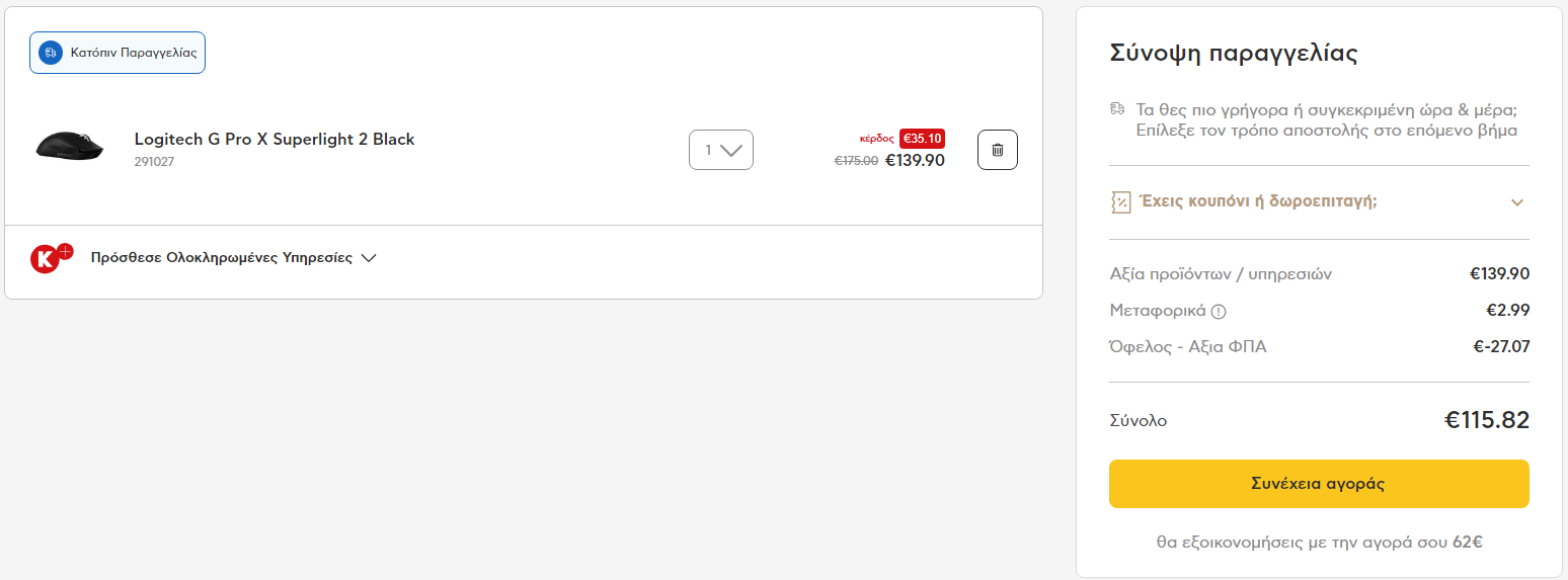 madmikex Δημοσ. 21 Ιανουαρίου 2024 Δημοσ. 21 Ιανουαρίου 2024 (επεξεργασμένο) Η έκπτωση εμφανίζεται στο καλάθι. Logitech Pro X Superlight 2 https://www.kotsovolos.gr/gaming-gadgets/pc/gaming-mice/291027-logitech-logitech-g-pro-x-superlight-2-black Logitech G502 X Plus https://www.kotsovolos.gr/gaming-gadgets/pc/gaming-mice/265252-mouse-logitech-g502-x-wireless-plus-blk Επεξ/σία 21 Ιανουαρίου 2024 από madmikex 1