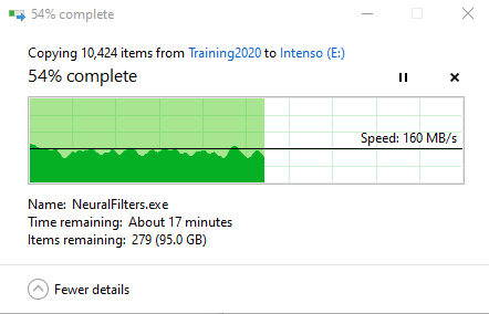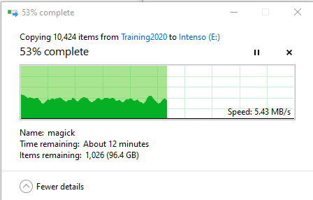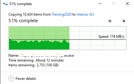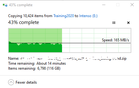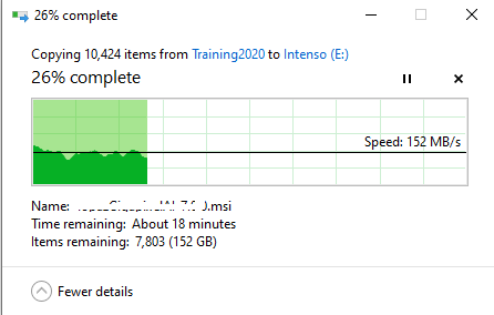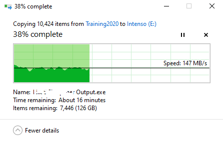 Δεν ξέρω τι θέλετε, μεταφέρω δυο φακέλους από εσωτερικό μηχανικό δίσκο που δεν έχει λειτουργικό 200Gb περίπου, έχει μεγάλα αρχεία βίντεο και πολύ μικρά png, στα μεγάλα αρχεία οι ταχύτητες είναι γύρω στο 140, στα μικρά πέφτει αρκετά, αλλά μόλις τελειώσουν πάει πάλι γύρω στο 150. Πείτε μου τι θέλετε να κάνω. Είμαι στη μέση της μεταφοράς θα βγάζω screenshot κάθε ένα λεπτό περίπου.