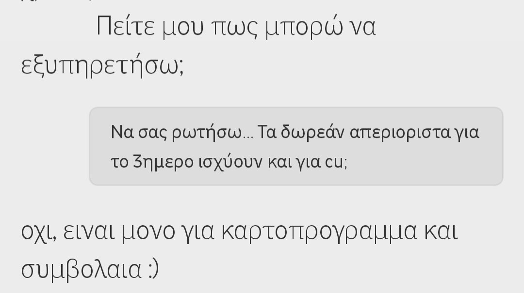 Αυτό που γράφεις δεν αφορά τα δωρεάν data για το 3ήμερο.