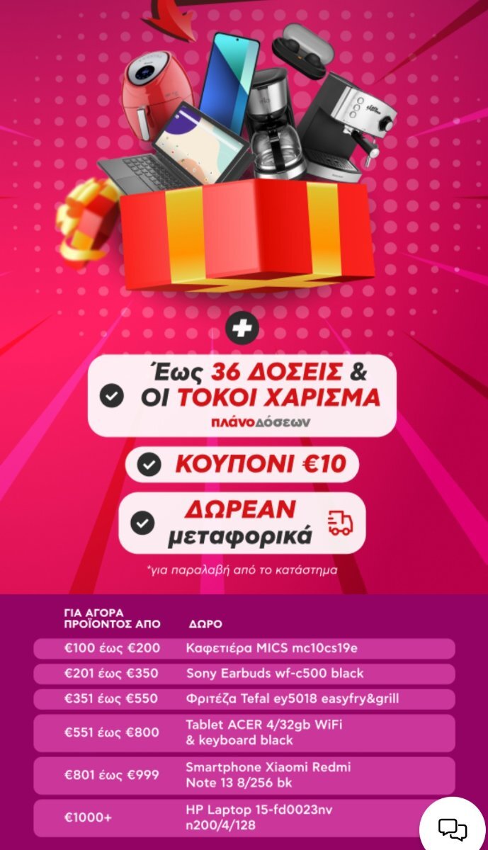 George6633 Δημοσ. 23 Μαρτίου 2024 Δημοσ. 23 Μαρτίου 2024 Δωρεάν μια έξτρα συσκευή στον Κωτσοβολο έως 25/3 23:59 με αγορές από 100€ και πάνω.Χρονια πολλά σε όλους! https://www.kotsovolos.gr/pages/weekend-bomb-deals 4