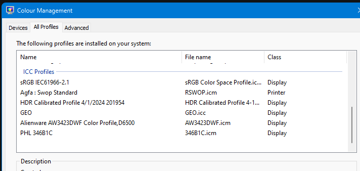 Arkin Δημοσ. 1 Απριλίου 2024 Μέλος Δημοσ. 1 Απριλίου 2024 (επεξεργασμένο) 6 λεπτά πριν, optimus prime είπε Ωραια το προφιλ αυτο του HDR ειπαμε ειναι λαθος.. Πηγαινε στο search της taskbar,πατησε color management και κανε κλικ. Θα σου ανοιξει ενα παραθυρο,στο παραθυρο αυτο θελω να μου πεις εαν βλεπεις το iccp προφιλ της Dell και οχι αυτο που εφτιαξες εσυ για HDR. Για δες κατι πρεπει να εχει Επεξ/σία 1 Απριλίου 2024 από Arkin