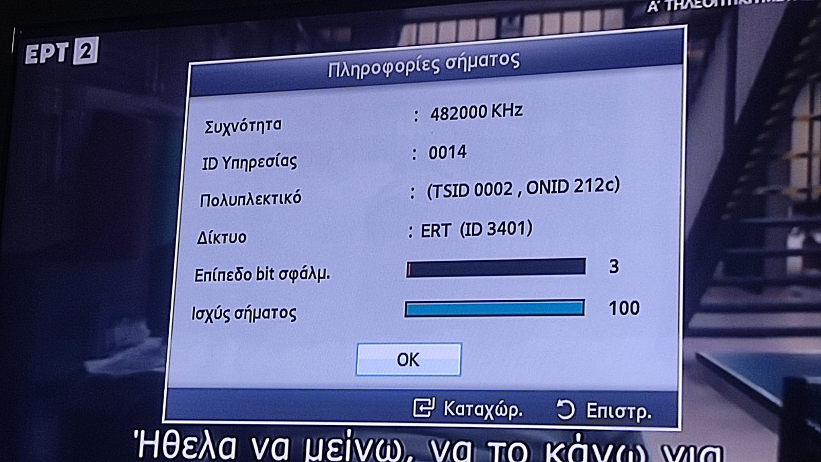 Petros Electron Δημοσ. 6 Απριλίου 2024 Δημοσ. 6 Απριλίου 2024 (επεξεργασμένο) 13 ώρες πριν, 00 George 00 είπε Δεν ξέρω το κουτί πως λέγετε μάλλον ενισχυτής σήματος γιατί η κεραία έχει απόσταση 15 - 20 μέτρα , χρησιμοποιώ μία τηλεόραση ... Η κεραία αλλάχτηκε πριν 5 χρόνια και δούλευε μέχρι τώρα σωστά . 1 ) Στο ψηφιακό κανάλι είναι η πρώτη εικόνα , η δεύτερη είναι στο αναλογικό και μόλις βάλω HDMI όλα μαύρα . 2 ) Δεν ξέρω πώς να το συνδέσω απευθείας στην τηλεόραση το καλώδιο , όλα παίρνουν από ένα πολύμπριζο ρεύμα αφαίρεσα το laptop και το σύνδεσα σε άλλη πρίζα του σπιτιού τα αποτελέσματα είναι αυτά στης φωτογραφίες . Η κεραία την είδα το πρωί δεν φαίνεται να έχει φθορές / σπασίματα κλπ .. είναι σε ένα ιστό 8 μέτρα περίπου σε ύψος με σκαλωσιά την έβαλε ο ηλεκτρολόγος . Οταν οι ἠλεκτρολόγοι κανουν εγ/σεις κεραιῶν και οχι οι ηλεκτρονικοι, ως πρέπει τοτε δεν εχω κατι αλλο να πω. Αυτο ειναι αλλο θεμα.. Στο δικο σου το θεμα, βλέπω πιθανη ενδοδιαμορφωση ή ακομα και παρεμβολη αν κρίνω απο τα επίπεδα των σφαλμάτων. Επισης απο οτι κατάλαβα δεν ἔχεις γνώσεις με το ἀντικείμενο, δεν στο λεω ὑποτιμητικά, ἄλλωστε εδω ειναι forum και προσπαθοῦμε να βοηθήσουμε. 1) Εγω πιστευω οτι εχεις πιθανη ενδοδιαμορφωση απο τον εν/τη και απο οτι βλεπω αυτο το παλαιο μοντελο της televes δεν εχει ποντεσιομετρο για να ρυθμίσεις την ενίσχυση, *μήπως εχει απο κατω?. Αν ναι, δοκίμασε με ενα κατσαβιδακι να την μειώσεις γυρίζοντας αριστεροστροφα. 2) Ακατάλληλη κεραια. Με την έλευση του 5G η UHF μπάντα πλεον ειναι 21-60 (στην πραξη 21-48) και οχι 21-69 οπως ηταν παλαιά. Η κεραια λοιπόν πρεπει να ειναι "LTE" αν δεν ειναι, πιθανόν να εχεις προβλήματα απο τις αρμόνικες που λαμβάνει απο το φασμα της κινητής τηλεφωνίας. Τις ιδιες προδιαγραφές πρεπει να εχει και ο ενισχυτής. Οπως και να εχεις, και για να μην παιδεύεσαι, φώναξε εναν ηλεκτρονικό εγ/τη κεραιών και με το πεδιομετρο του θα κάνει την ανάλυση του σήματος και θα σου βρει την λυση. 13 ώρες πριν, 00 George 00 είπε Στο ψηφιακό κανάλι είναι η πρώτη εικόνα , η δεύτερη είναι στο αναλογικό Δεν υπαρχουν πλεον αναλογικα καναλια, ολα ειναι ψηφιακά (DVB-T) Επεξ/σία 6 Απριλίου 2024 από Petros Electron