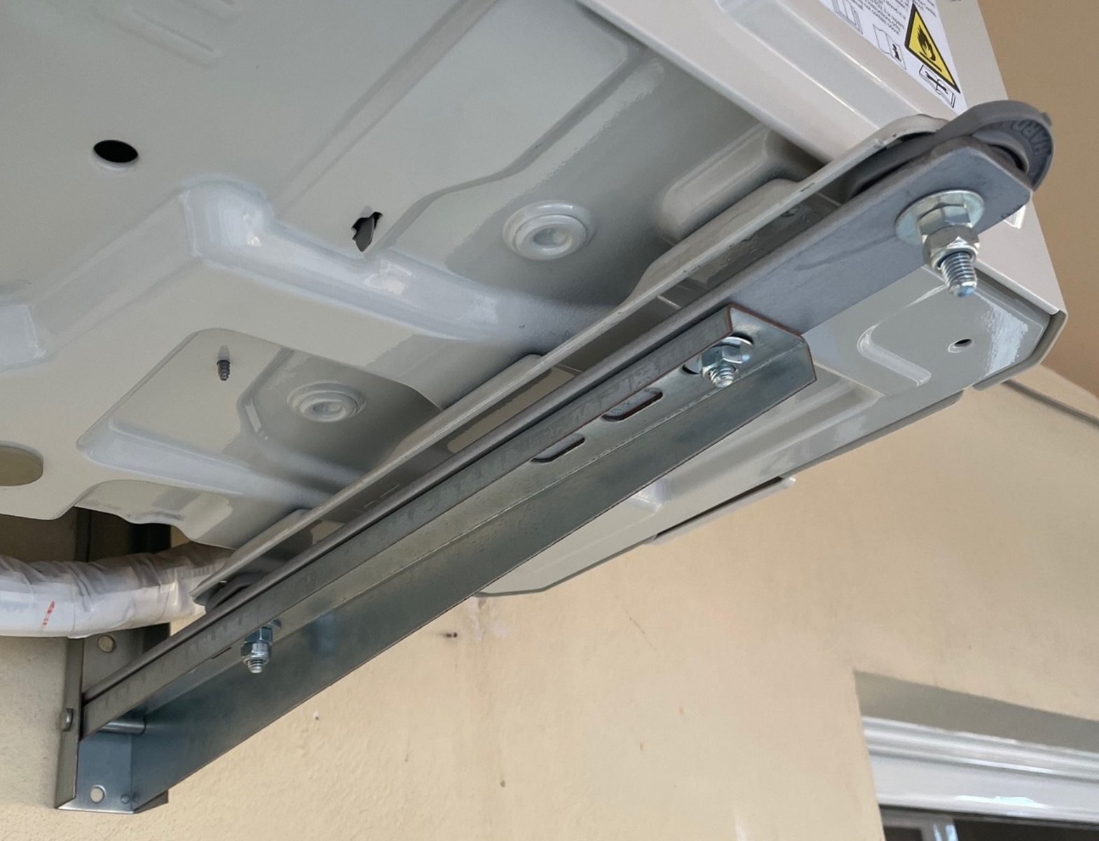 Επικίνδυνη πατέντα. Η βάση είναι light για πιo μικρό μηχάνημα, και με τον τρόπο που τη μεγάλωσες, επιβαρύνεις πολύ (λόγω ροπών) τα πυράκια της στήριξης κάτω και τα βίσματα ψηλά στον τοίχο. Ειδικά αν κάνει τίποτα μικροκραδασμούς ή συντονισμούς να έχεις το νου σου. Δεν θα καθόμουν από κάτω.