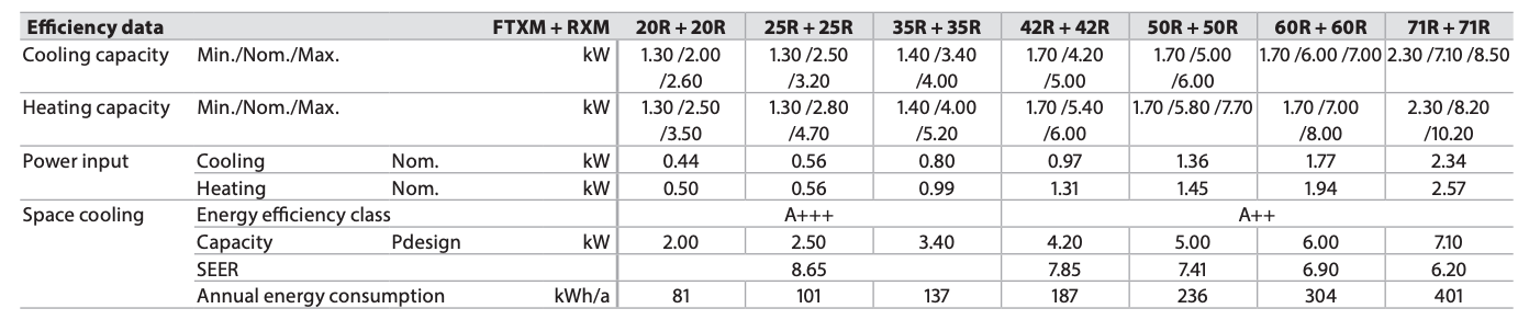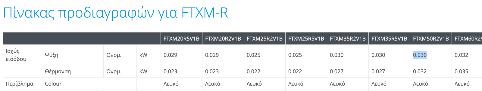 Έψαξα να βρω σε πόσα watt μπορεί να πέσει το Perfera FTXM50R, και βρίσκω μόνο το nom στο πρώτο πινακάκι, ενώ στο δεύτερο δίνει το min (30watts??)