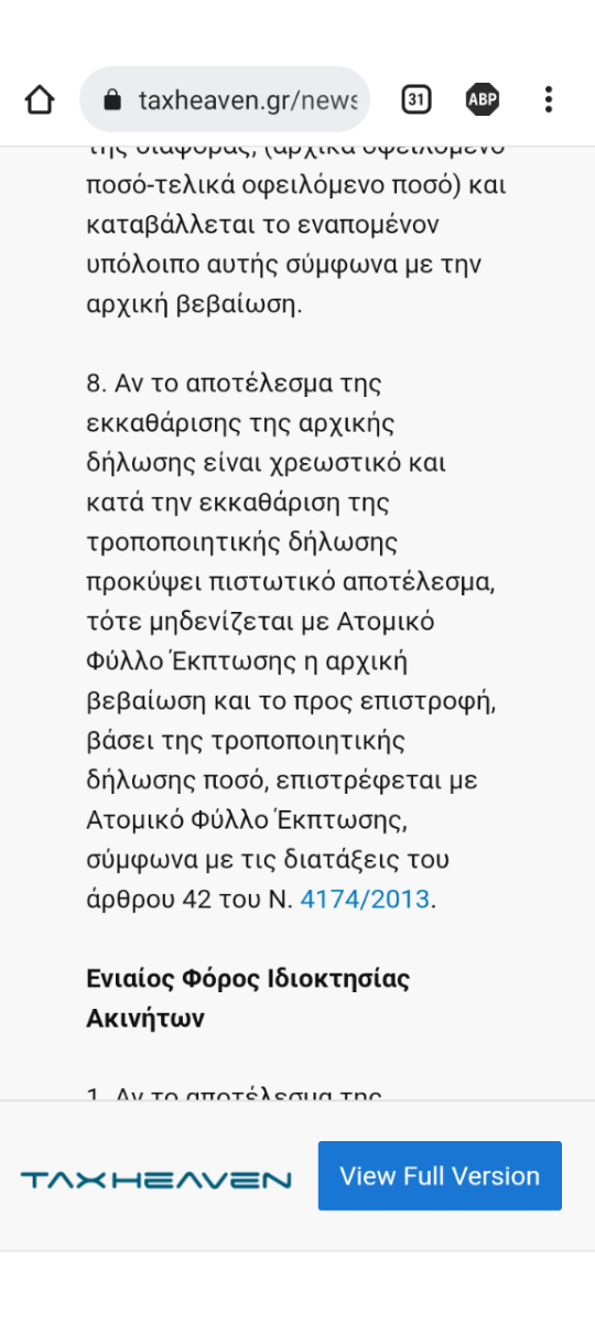 Krusty Δημοσ. 6 Αυγούστου 2024 Δημοσ. 6 Αυγούστου 2024 (επεξεργασμένο) @Inci624 Πρέπει να έχεις δίκιο. Εγώ αναφερόμουν στον σύνδεσμο που είχε παραθέσει ο @ekrepali και έλεγε καθαρά εώς 100 ευρώ παραπάνω ή παρακάτω διαφορά δεν έχουμε πρόστιμο. Τώρα αναγράφει άλλα η ίδια ιστοσελίδα νομίζω. Συνεπώς, δεν επιβάλλεται πρόστιμο, χωρίς να απαιτείται να εξεταστεί το όριο των εκατό (100) ευρώ, στις κάτωθι περιπτώσεις: • η αρχική δήλωση είναι χρεωστική και με την τροποποιητική μειώνεται το χρεωστικό υπόλοιπο • η αρχική δήλωση είναι χρεωστική και με την τροποποιητική προκύπτει πιστωτικό υπόλοιπο https://www.taxheaven.gr/news/60368/dieykriniseis-gia-th-mh-epibolh-prostimoy-se-ekprooesmes-tropopoihtikes-dhlwseis-otan-to-epipleon-poso-foroy-poy-prokyptei-einai-ews-100-eyrw **************** Με όλα αυτά εγώ δεν καταλαβαίνω γιατί να φοβόμαστε να δηλώνουμε ότι να ναι σε πολλά πράγματα μέσα στην φορολογική δήλωση; Πχ δεν έγραψα ότι με φιλοξενούσε κάποιος για έξι μήνες. Ε και; Αν μου βάλει κάποιος πρόστιμο δεν χρειάζεται καν ένσταση, αφού με μια εκπρόθεσμη τροποποιητική για πόσα χρόνια πριν, μπορώ να το σώσω. Το ίδιο και αν δεν δήλωσα πχ πώληση αυτοκινήτου. Επίσης θα μπορούσε κάποιος με αρχική δήλωση να αλλάξει τις προσυμπληρωμένες ηλεκτρονικές δαπάνες ώστε να προκύψει 99,99 ευρώ μικρότερος φόρος. Αν τον πιάσουν ή του ζητήσουν αποδείξεις, δεν θα μπορούσε να επικαλεστεί εκπρόθεσμη τροποποιητική που θα αναγράφει την αλήθεια μετά; Αν του βάλουν πρόστιμο τελικά λόγω ψευδούς αρχικής δήλωσης, δεν θα πρέπει να βάλουν και σε όλους όσους άλλαξαν τον 049 με τροποποιητική; Δύσκολο να πέσει κανείς σε περίπτωση προστίμου τροποποιητικής λόγω διαφοράς. Επεξ/σία 6 Αυγούστου 2024 από Krusty 1