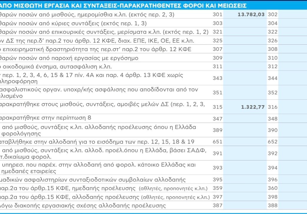 Γιάννης Platano Δημοσ. 21 Μαρτίου Δημοσ. 21 Μαρτίου (επεξεργασμένο) 21 λεπτά πριν, li@m είπε Ο φορος αν δεν εχει τεκνα, θα επρεπε να ειναι ~991. Εδω φαινεται πως του εχουν παρακρατησει 1322 - 991 = 331 περισσοτερα. Φανταζομαι πως τα υπολοιπα 76 θα ειναι απο αγορες που μειωνουν τα αφορολογητο(γυμναστηρια, κομμωτηρια κα) Δεν εχει τετοια Ισως υπολογιστηκε σε 14 μισθους ενω εργαστηκε για 9 μηνες η προκαταβολη Επεξ/σία 21 Μαρτίου από Γιάννης Platano