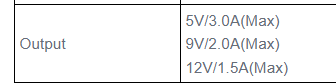 • 5V x 3A = 15 Watt