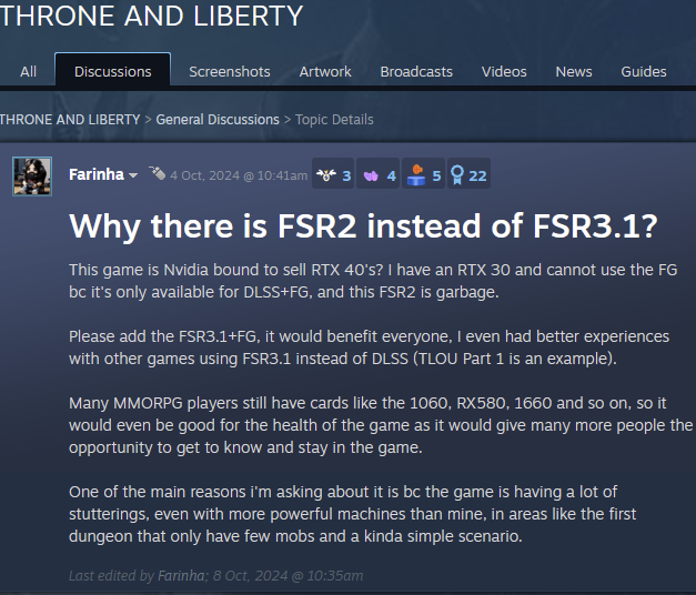 BlurayMoviesGreece Δημοσ. 2 Μαρτίου Δημοσ. 2 Μαρτίου (επεξεργασμένο) 6 λεπτά πριν, Fulgore είπε Βρήκε ένα παράδειγμα περσινού παιχνιδιού το οποίο υποστηρίζει το κατώτερο FSR 2, και τσουβαλιάζει FSR γενικά και αόριστα με Dlss γενικά και αόριστα, για να δείξει πόσο κατώτερο ειναι το FSR σε σχέση με το Dlss. Αυτο παιζω τι να κανω να αλλαξω για να σας κανω χαρουμενους; Πολλοι απο εδω μεσα μπορει να παιζουν T&L. Επεξ/σία 2 Μαρτίου από BlurayMoviesGreece