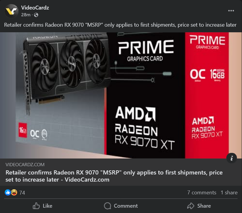 Fulgore Δημοσ. 6 Μαρτίου Δημοσ. 6 Μαρτίου Μόλις τώρα, Tambas91 είπε η 5070τι δε μπορεί να κρατήσει τέτοια τιμή και θα το δούμε και στη πορεία, κάθε φορά στο launch βλέπουμε τραγικές τιμές Μια χαρά μπορεί και η 5070ti και η 5080 να κρατήσουν αυτές τις τιμές, όσο δεν υπάρχει διαθεσιμότητα. Γιαυτό ακόμα και αυτές οι λίγες που κυκλοοφορούν, ξεπουλάνε επι τόπου. Αν ανοίξεις το skroutz/bestprice, δεν υπάρχει απόθεμα σε κάρτες πάνω από 4060ti, άρα δεν έχεις εναλλακτική στο τι θα αγοράσεις σήμερα. Ακόμα και το launch της 5070, πήγε για τέλος του μήνα.