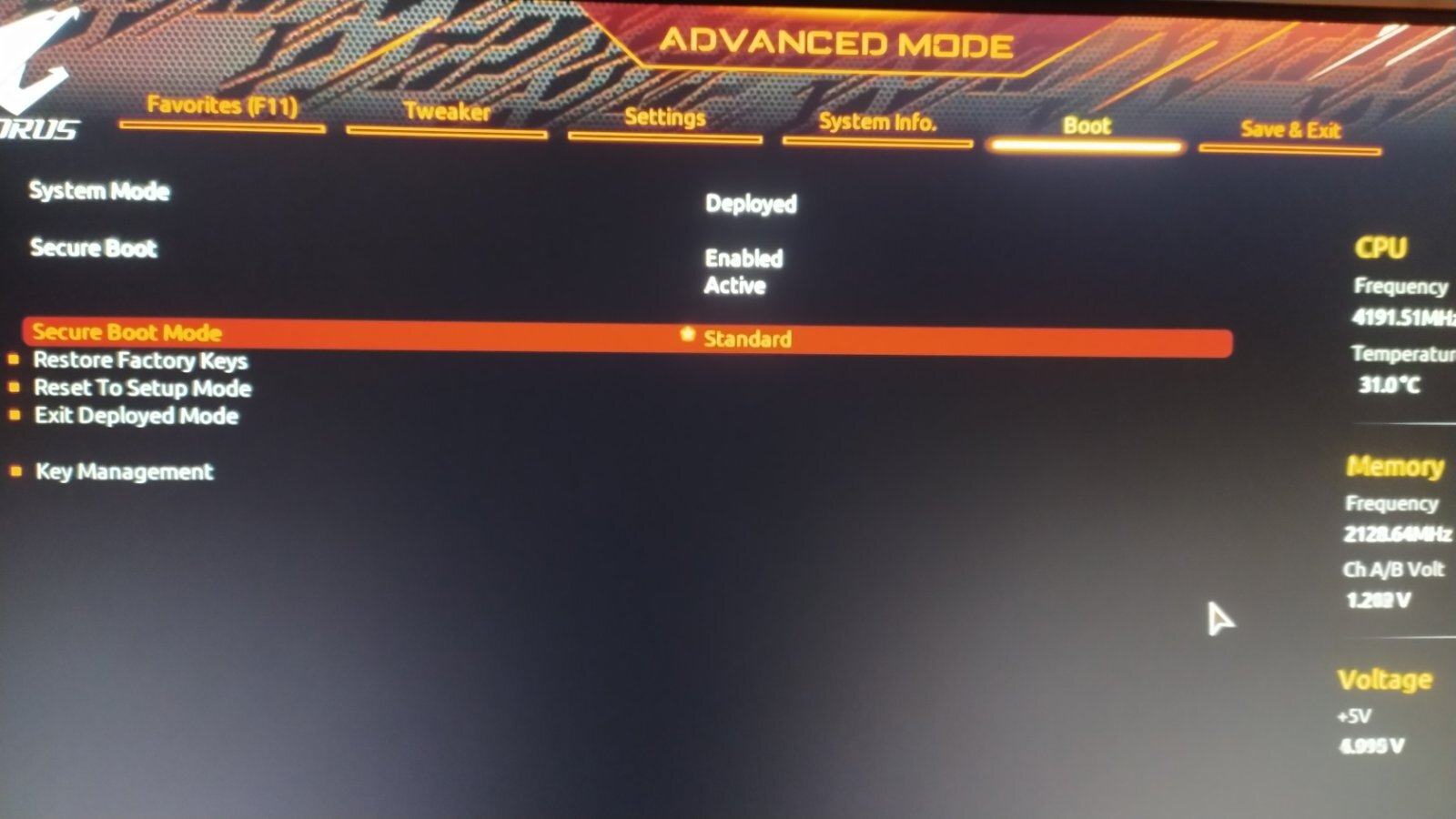 pavloa Δημοσ. 16 Ιουνίου 2024 Μέλος Δημοσ. 16 Ιουνίου 2024 (επεξεργασμένο) Σήμερα μπήκα στο bios και μου βγάζει αυτό Στην δεύτερη εικόνα εκεί που λέει standard αν το πατήσω έχει άλλη μια επιλογή custom. Επίσης την πρώτη φορά που μπήκα στο bios έγραφε not active, επειδή ήθελα να δω τι άλλο έχει στα μενού όταν ξανά μπήκα στο bios γραφει active. Tώρα τι παίζει? Επίσης βγάζει και αυτό το μενού Επεξ/σία 16 Ιουνίου 2024 από pavloa