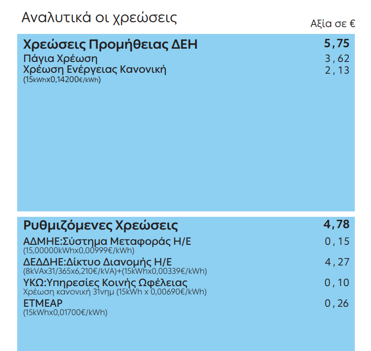mariosnik_ Δημοσ. Τετάρτη στις 08:18 μμ Δημοσ. Τετάρτη στις 08:18 μμ 3 ώρες πριν, sphinxgr είπε Πάμε λίγη αλητεία από τη ΔΕΗ που το άκουσα κάπου και το επιβεβαίωσα. Γράφει λοιπόν στο Site της τα ακόλουθα. Ισχύει? Φυσικά και όχι. Το επιβεβαίωσα με δικό μου λογαριασμό σε κλειστό σπίτι. ΧΡΕΩΝΕΙ κανονικά ΕΡΤ. Μετά τη γελοιότητα που ενεργοποιούν το Green Pass αλλά δεν μπορείς με κανέναν τρόπο να κάνεις απενεργοποίηση και διακοπή χρέωσης, τώρα αυτό. Απόλυτη ανηθικότητα γιατί ξέρουν ότι ελάχιστοι θα ασχοληθούν. Νομιζω οτι ως αξία ηλεκτρικού ρεύματος εννοούν και τις ρυθμιζόμενες χρεωσεις. Επειδή έχω καιρό να ασχοληθώ τι γίνεται με τα συμβόλαια, θα ήθελα κάποιος να μου πει από ΔΕΗ αν το σταθερό παραμένει το καλύτερο σε σχέση με το 4all, μέχρι πέρσι είχα 4all, όμως πήγα σε σταθερό γιατί μετά το καλοκαίρι του 2024 ανέβηκαν οι τιμές που ήταν μεταβλητές, σε λίγους μήνες λήγει το ετήσιο και πρέπει να δω τι πακέτο θα βάλω.